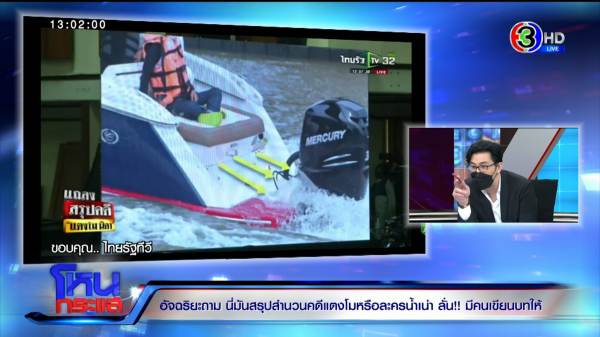 อัจฉริยะ : ผมเดินหน้าหาความจริง ตอนนี้เราทำให้ประชาชนที่ต่อไปเคสนี้จะเป็นเคสสตัสดี้ของเมืองไทย ที่เกิดเหตุการณ์ที่มีพล.ต.ต. “ต” อยู่ๆ มาเป็นกุนซือให้ แล้วออกรูปแบบนี้เจตนาต้องการให้ผู้ต้องหาหลุดพ้นคดี เหมือนพี่อะตอมพูด ประมาทยังไง ประเด็นนี้ก่อน เรือลำเดียว มีประมาท 3 คน มันผิดปกติ คำว่าทิ้ง ทิ้งยาบ้าถือเป็นการทำลายหลักฐาน นี่ทิ้งขวดไวน์ มันทำลายหลักฐานอะไร