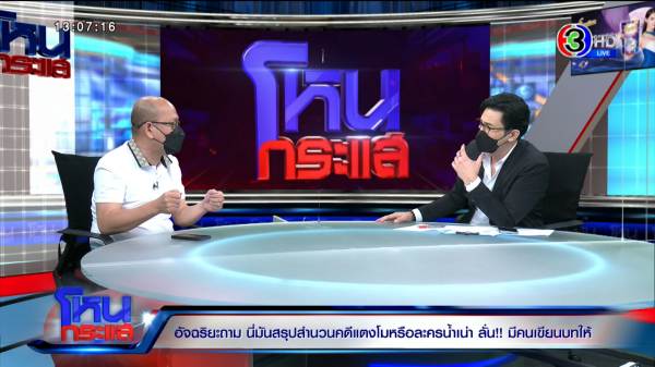 รายการโหนกระแสวันที่ 27 เมษายน 2565 ดำเนินรายการโดย “หนุ่ม กรรชัย กำเนิดพลอย” ผลิตในนามบริษัท ดีคืนดีวัน จำกัด ออกอากาศทุกวันจันทร์-ศุกร์ เวลา 12.35 น. ทางช่อง 3 กดเลข 33 สัมภาษณ์ “อัจฉริยะ เรืองรัตนพงศ์” ประธานชมรมช่วยเหลือเหยื่ออาชญากรรม หลังตร.ภูธรภาค 1 แถลงข่าวสรุปสำนวนคดี “แตงโม นิดา” เพื่อส่งต่อชั้นอัยการ มาพร้อม “อะตอม สัมพันธภาพ” เพื่อนสนิทแตงโม