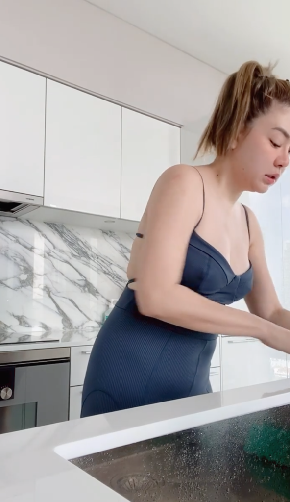 ล่าสุด สาวโอ๋ ได้ โพสต์คลิป ลงอินสตราแกรมส่วนตัว รีวิวงานของคุณแม่บ้าน พร้อมระบุแคปชั่นว่า “ต้องการแม่บ้านไหมคะ #ผีแม่บ้านเข้าสิง” โดยในคลิปเจ้าตัวลงมือทำความสะอาดบ้านอย่างขยันขันแข็งทุกขั้นตอนทั้งกวาด เช็ด ถู แต่ว่าชุดแม่บ้านของเธอนั้นแย่งซีนสุดๆ ความแซ่บสะกดทุกสายตา กับชุดจั๊มสูทสายเดี่ยวขาสั้นรัดรูป ที่อวดรูปร่างอย่างชัดเจน ทำเอาห้องครัวร้อนฉ่าไม้ม็อบไฟลุกเลยทีเดียว