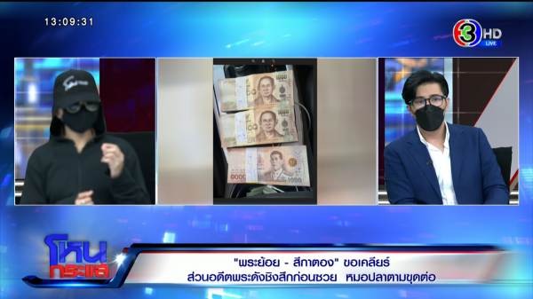 รายการโหนกระแสวันที่ 2 พ.ค. 65 ดำเนินรายการโดย “หนุ่ม กรรชัย กำเนิดพลอย” ผลิตในนามบริษัท ดีคืนดีวัน จำกัด ออกอากาศทุกวันจันทร์-ศุกร์ เวลา 12.35 น. ทางช่อง 3 กดเลข 33 สัมภาษณ์ “ใบตอง” สีกาที่มีสัมพันธ์กับอดีตพระ มาพร้อม “พระย้อย” และ “หมอปลา มือปราบสัมภเวสี”