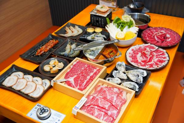 *** ฟินเต็มอิ่มกับเมนูพรีเมี่ยมบุฟเฟ่ต์ทุกรายการ อย่างเนื้อวากิว เนื้อแองกัส ลิ้นวัว หมูคุโรบูตะ ปลาแซลมอน ปลาบัตเตอร์ฟิช กุ้งแม่น้ำ หอยแมลงภู่นิวซีแลนด์ กุ้งแชบ๊วยทะเล หอยนางรม และเมนูคุณภาพอีกกว่า 100 เมนู และที่สำคัญเลือกได้ถึง 2 น้ำซุป รวมถึง ไอศกรีม Homemade You&I ได้ไม่อั้น