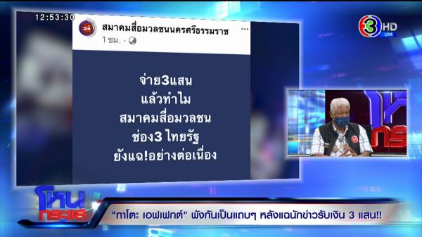 รายการโหนกระแสวันที่ 3 พ.ค. 65 ดำเนินรายการโดย “หนุ่ม กรรชัย กำเนิดพลอย” ผลิตในนามบริษัท ดีคืนดีวัน จำกัด ออกอากาศทุกวันจันทร์-ศุกร์ เวลา 12.35 น. ทางช่อง 3 กดเลข 33 สัมภาษณ์ ไพฑูรย์ อินทศิลา ประธานศูนย์ข่าวนครฯ 24 ชม. สมาคมสื่อมวลชนนครศรีธรรมราช และ ยุทธนา แต่งวงศ์ นายกสมาคมสื่อมวลชนนครศรีธรรมราช