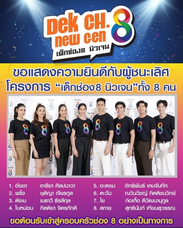 ประกาศผลแล้ว!! 8 ผู้ชนะ “เด็กช่อง8นิวเจน” สวย หล่อ ครบ เตรียมมีผลงานละครทันที