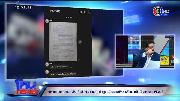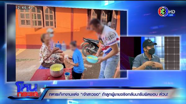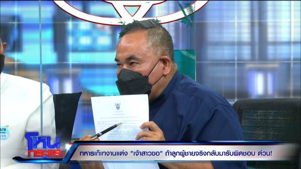 วัชรพล : ใช่ครับ ผมถามตัวเขาเองว่าไม่ใช่ทหาร เขาก็บอกว่าไม่ใช่ทหาร ฝากให้ผมตอบกับสังคมด้วยว่าวันที่ 11 ขอเจอที่สภ.นาดี เพื่อชดใช้และกู้หน้าให้เจ้าสาว และชดใช้ค่าเสียหาย ก็บอกว่าพี่เป็นสื่อกลางให้นะ