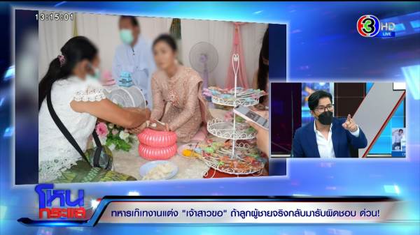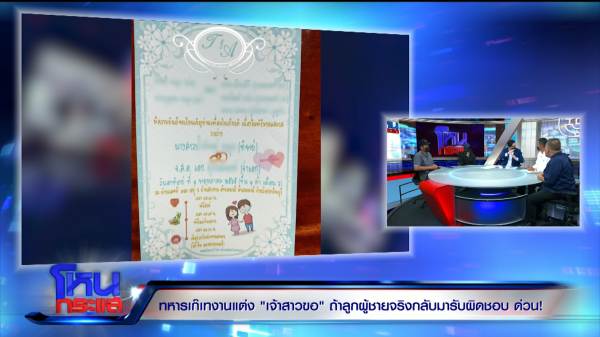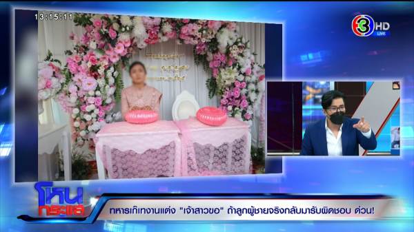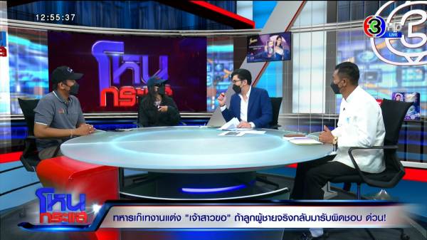 รายการโหนกระแสวันที่ 6 พ.ค. 65 ดำเนินรายการโดย “หนุ่ม กรรชัย กำเนิดพลอย” ผลิตในนามบริษัท ดีคืนดีวัน จำกัด ออกอากาศทุกวันจันทร์-ศุกร์ เวลา 12.35 น. ทางช่อง 3 กดเลข 33 สัมภาษณ์ ทิพย์ เจ้าสาวที่ถูกเจ้าบ่าวเท มาพร้อมแฟค หลานชาย, วัชรพล ศรีอวน นายก อบต. นาดี จ.ปราจีนบุรี และทนายสงกาญ์ อัจฉริยะทรัพย์