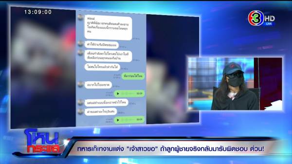 ในวันที่ 21 เม.ย. ฝั่งเจ้าบ่าวที่อ้างตัวเป็นทหาร ใช้ชื่อว่าองศา บอกว่าตัวเองแจ้งทางอำเภอเรียบร้อย คนมาร่วมงานต้องตรวจเอทีเคทุกคน แล้วยังบอกว่าใครว่างขอแรงหน่อย เตรียมพื้นที่ ขนโต๊ะ ขนเต็นท์ จักรพันธ์เป็นพี่เขย บอกว่าโอเค ดีใจน้องจะได้แต่งงาน บอกพร้อมตอนไหนมาเรียกเด้อ อยู่บ้านตลอด ตามคือพี่ชายคุณบอกว่าขอนอนก่อนเด้อ ทุกคนดูรักหมด เดี๋ยวจะตามไป องศาบอกว่าของเพื่อนให้เจ้าบ่าว เจ้าสาวต้องมีมั้ย จะให้น้องสาวเตรียมให้ถูก เหมือนบอกว่าน้องสาวจะมาด้วย หลังจากนั้นมีการลงรูปเหมือนรูปเพื่อนเจ้าสาวถ่ายรูปกับเจ้าสาว องศาบอกว่าจัดไป แบบไหนสวย จัดเต็มเลย จัดงานทั้งที ทุกอย่างมีการพูดกัน มีการลงภาพด้วยธีมเจ้าสาว ธีมเจ้าบ่าว เขาสร้างให้เห็นว่าเขารักเรามาก จะทำเสื้อคู่หลังแต่งงานแล้ว ทุกอย่างดูราบรื่น แล้วเกิดอะไรขึ้น วันแต่งงานวันที่ 1 เกิดอะไรขึ้นตั้งแต่เช้าเลย?