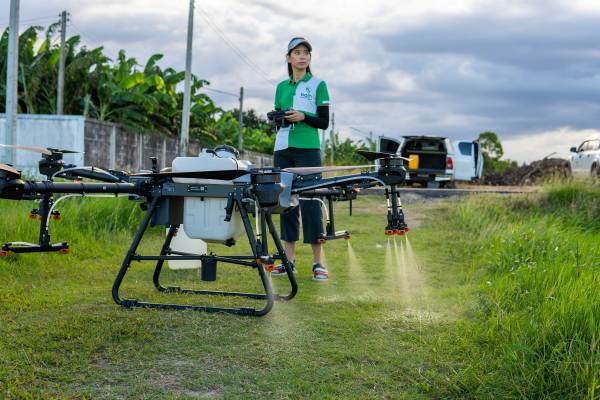 คุณรัตยา เฉลิมวงศ์ ประธานเจ้าหน้าที่ฝ่ายผลิตภัณฑ์ บริษัท ดีจีไอ โปรดักชั่น จำกัด กล่าวเพิ่มเติมว่า “โดรนเกษตร คืออากาศยานไร้คนขับ ที่ใช้งานทางการเกษตร ปัจจุบันมีทั้งการฉีดพ่นสารน้ำ การหว่านปุ๋ยและเมล็ดพันธุ์ การถ่ายภาพเพื่อสำรวจคุณภาพผลผลิต โดยปัจจุบันกว่า 90% ของโดรนเกษตร จะอยู่ในรูปแบบของการพ่นสารน้ำ การหว่านปุ๋ยและเมล็ดพันธุ์ โดรนเกษตรมีแนวโน้มเติบโตในตลาดขึ้นอย่างต่อเนื่องทุกปี โดยปี 2564 เติบโตขึ้นถึง 200% เมื่อเทียบกับปีที่ผ่านมา ซึ่งโดรนเกษตรเข้ามาทดแทนการทำงานเดิมที่เกษตรกรต้องแบกเครื่องพ่นสะพายหลัง ที่มีขนาดถังบรรจุถึง 25 กิโลกรัม ส่งผลเสียต่อเกษตรกรในด้านสุขภาพ และใช้ระยะเวลานานในการทำงาน ไม่สม่ำเสมอ รวมทั้งมีข้อจำกัดในบางช่วงอายุของพืช เช่น ช่วงข้าวออกรวง หรือพืชสูง เป็นต้น โดรนเกษตรจึงเข้ามาตอบโจทย์ ลดระยะเวลาการทำงานให้แก่เกษตรกร เพิ่มคุณภาพการฉีดพ่นที่ทั่วถึงด้วยระบบการวางแผนงานอย่างครอบคลุม และสามารถใช้งานกับพืชได้หลากหลายชนิด ทุกช่วงอายุของพืช พร้อมสร้างอาชีพให้แก่คน รุ่นใหม่ ที่หันมาทำการเกษตรผ่านเทคโนโลยีกันมากขึ้น”