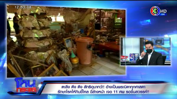 รายการโหนกระแส วันนี้ (9 พ.ค.) เป็นเรื่องอื่นไปไม่ได้เลย นอกจากประเด็นเรื่องราวของ “พระบิดา” บุคคลที่อ้างตัวเองว่าเป็นพระบิดาของทุกศาสดา โดยจะ ปัสสาวะ อุจจาระ ถุยเสมหะ น้ำลายลงไปในหลุมเล็ก ๆ ให้ชาวบ้านมารักษาตัวเองด้วยการเอาหน้าจุ่มลงไป หรือเอามาทาหน้า