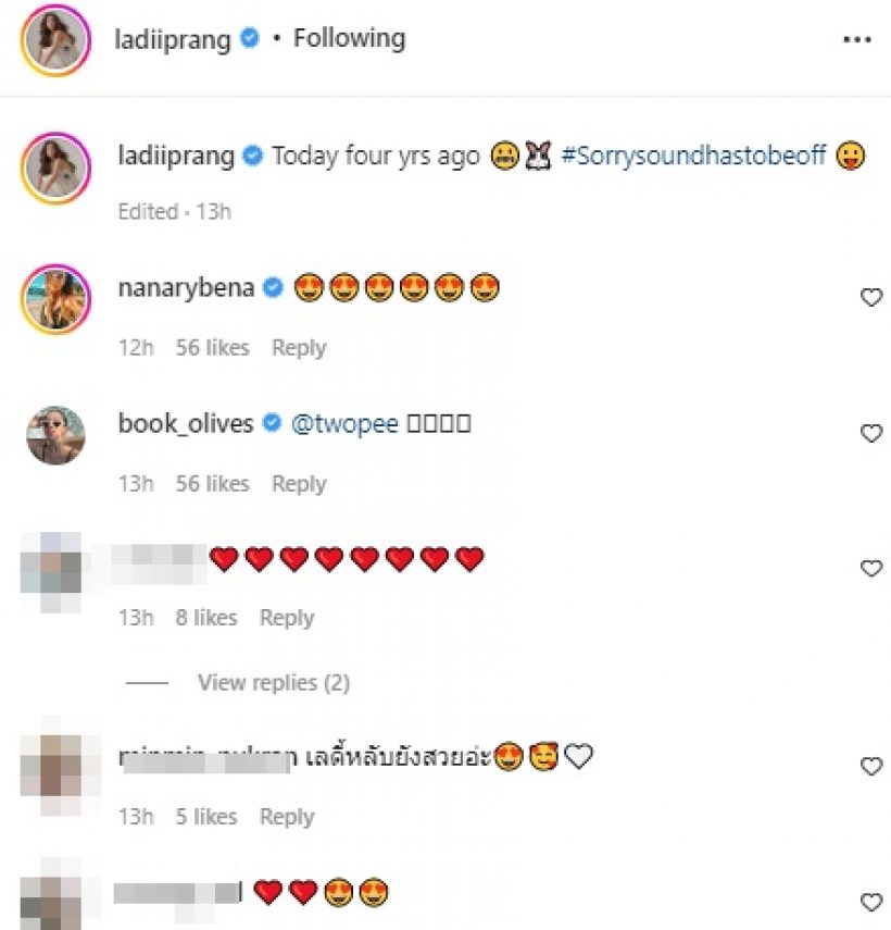 อย่างล่าสุด โต้ง ก็ได้ยึดอินสตราแกรมของสาวปรางเรียบร้อย โพสต์คลิปสาวปรางกำลังนอนหลับ มีโต้งนั่งอยู่ข้าง ๆ และจุ๊บหน้าผากไป 1 ทีหวาน ๆ พร้อมระบุแคปชั่นว่า “Today four yrs ago #Sorrysoundhastobeoff”