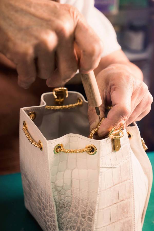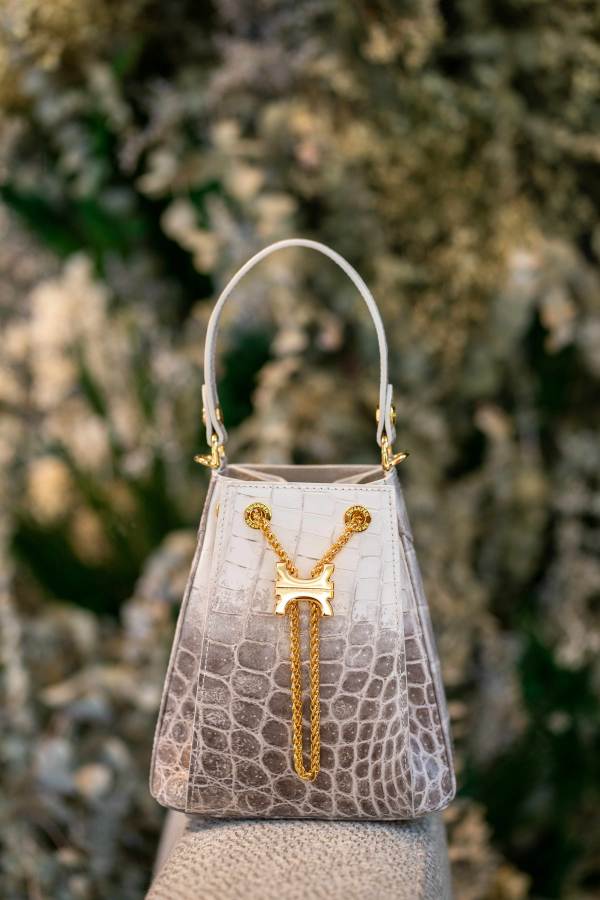 กระเป๋าหนังจระเข้ทรงบักเก็ตไซส์มินิที่ใช้เทคนิคการ folding แบบโอริงามิ ศาสตร์การพับอันเก่าแก่ของประเทศญี่ปุ่น ด้านหน้าตกแต่งโซ่ประดับโลโก้ควานเพน คล้องผ่านตัวเชื่อมต่ออะไหล่แต่ละด้าน เมื่อรูดรวมกันแล้วจะเห็นได้ถึงความมีน้ำหนึ่งใจเดียวกัน Crest Link Origami Bucket Bag มีให้เลือกทั้งสีทูโทนและสีเดียว นอกจากนั้นยังมาพร้อมสายสะพายที่สามารถนำไปสะพายข้างได้อีกด้วย