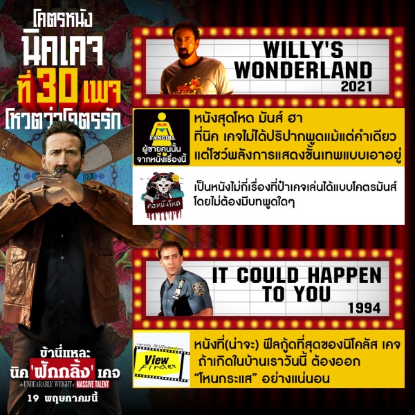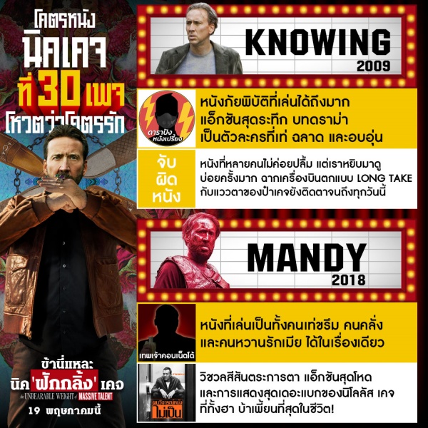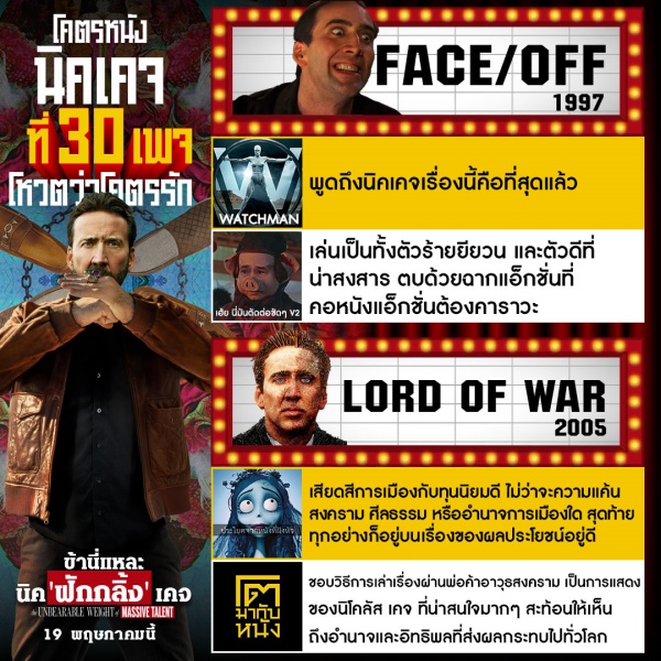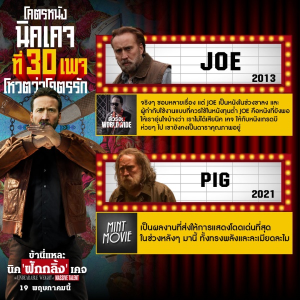 จากคำการันเตอทูการันตีของทั้ง 30 เพจคอหนังชั้นนำขนาดนี้ คงทำให้หลายคนย้อนคิดถึงผลงานของ นิโคลัส เคจ ที่เคยดูกันมาไม่มากก็น้อย แต่ที่สำคัญไปกว่านั้น คือการเตรียมกรามไปขำให้สุด กับความแอ็กชั่นสุดป่วงของสายลับจำเป็น ในผลงานล่าสุดของ นิค เคจ ที่จะมารับบท นิค เคจ ใน “The Unbearable weight of #MassiveTalent #ข้านี่แหละนิคฟักกลิ้งเคจ” 19 พฤษภาคมนี้ ในโรงภาพยนตร์