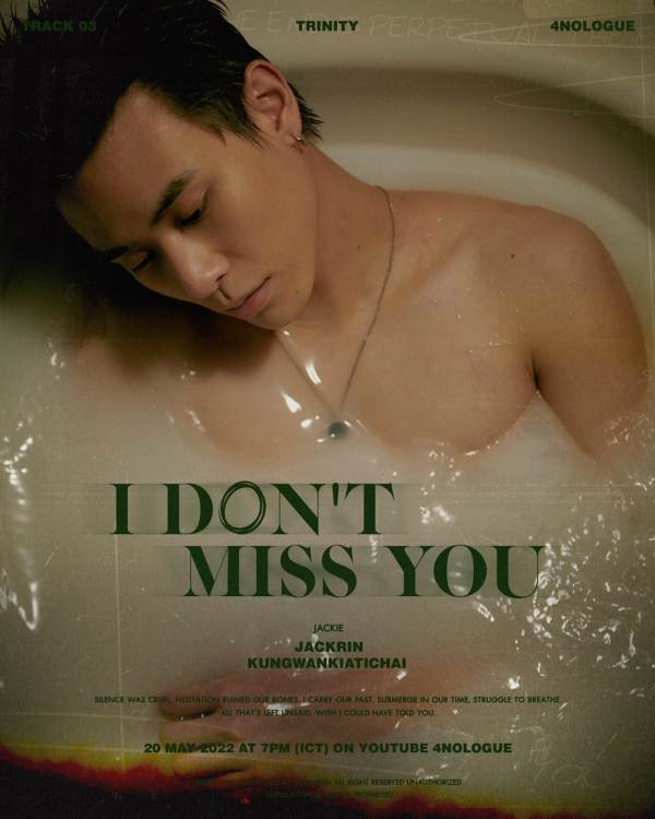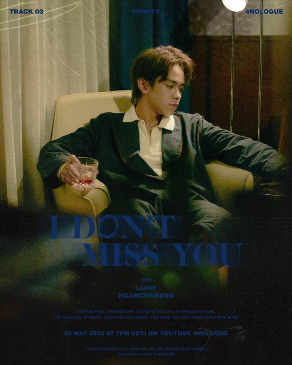 ถึงเวลาสัมผัสความรู้สึกของลมหายใจอีกรูปแบบ… เมื่อ 4NOLOGUE (โฟร์โนล็อค) ประกาศ TRACK 3 ใน TRINITY 1ST FULL ALBUM EP.01 BREATH ของสามหนุ่ม TRINITY (ทรินิตี้) “เติร์ด-ลภัส, ปอร์เช่-ศิวกร” และ “แจ๊คกี้-จักริน” กับเพลง “I DON’T MISS YOU” ที่ได้ “แทน ลิปตพัลลภ” มารับหน้าที่โปรดิวเซอร์คู่ใจคนล่าสุด ถ่ายทอดโจทย์ลมหายใจอีกหนึ่งรูปแบบ แต่ว่าลมหายใจ ตามคอนเซ็ปอัลบั้มของเพลงนี้จะเป็นอย่างไร ชาว TWILIGHT (ทไวไลท์ : ชื่อแฟนคลับ) รอฟังเพลง รอดูมิวสิควิดีโอ พร้อมกันทั่วโลก 20 พฤษภาคมนี้