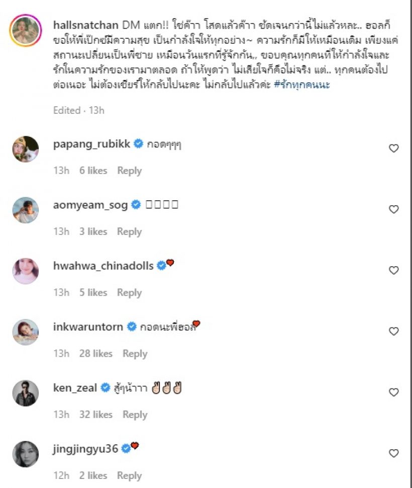 โดยล่าสุด สาวฮอล ได้ออกมาเคลื่อนไหว พร้อมเปิดใจครั้งแรกในอินสตราแกรม hallsnatchan