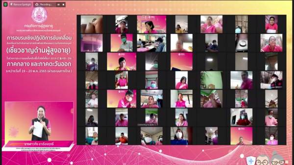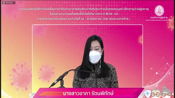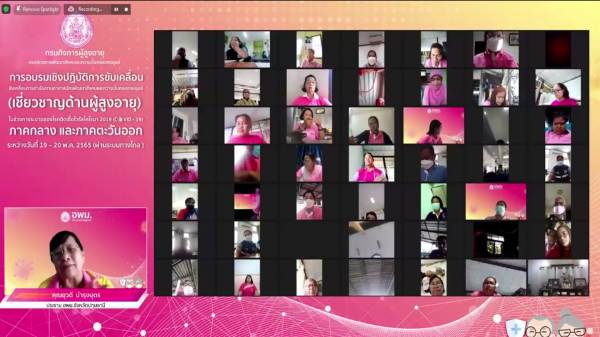 วันนี้ (19 พฤษภาคม 2565) เวลา 09.00 น. นางสุจิตรา พิทยานรเศรษฐ์ อธิบดีกรมกิจการผู้สูงอายุ เป็นประธานในพิธีเปิดการอบรมเชิงปฏิบัติการขับเคลื่อนการดำเนินงานอาสาสมัครพัฒนาสังคมและความมั่นคงของมนุษย์ (เชี่ยวชาญด้านผู้สูงอายุ) ในช่วงการระบาดของโรคติดเชื้อไวรัสโคโรนา 2019 (COVID – 19) ภาคกลางและภาคตะวันออก ผ่านระบบทางไกล (Zoom Video Conference) ซึ่งอบรมระหว่างวันที่ 19 – 20 พฤษภาคม 2565 เพื่อการดูแลคุ้มครองพิทักษ์สิทธิผู้สูงอายุระดับจังหวัดและระดับพื้นที่ และสนับสนุนเชื่อมโยงการดำเนินงานร่วมกับภาคีเครือข่ายเพื่อดูการแลผู้สูงอายุอย่างมีระบบรองรับสังคมสูงอายุ