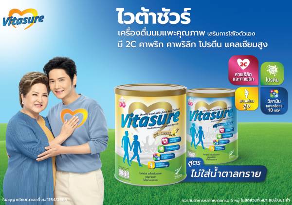 บริษัท แปซิฟิค เฮลธ์แคร์ (ไทยแลนด์) จำกัด ผู้นำเข้าและจัดจำหน่าย นมแพะ DG นมสำหรับเด็กทารก เด็กเล็ก และทุกคนในครอบครัว จากประเทศนิวซีแลนด์ เปิดตัวผลิตภัณฑ์ใหม่ “ไวต้าชัวร์” (Vitasure) เครื่องดื่มนมแพะเพื่อสุขภาพที่พัฒนาเพื่อตอบโจทย์ตลาดกลุ่มวัยทำงาน-ผู้สูงอายุ ชูจุดเด่นด้วยกรดไขมันดี ช่วยลดโอกาสการสะสมคอเลสเตอรอล ตอบรับเทรนด์สังคมผู้สูงวัย (Aged Society) เพื่อสุขภาพดีระยะยาว