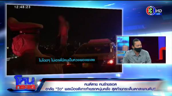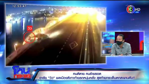ก้าน : เราไม่ได้ทิ้ง แต่คิดว่าอะไรจะเกิดขึ้นได้มากกว่ากัน ตอนอยู่ที่สะพาน ผมบอกเจ้าหน้าที่แล้วว่ามีอีกคนนะที่มาด้วยกัน เกาะรถมา เจ้าหน้าที่กู้ภัยตรงนั้นรับรู้ ตร.ที่อยู่บนสะพานนั้นรับรู้ ดังนั้นผมถือว่าผมบอกแล้ว ไม่ใช่ไม่ได้บอก เราเห็นกับตาว่าเขาเกาะไปจริงๆ