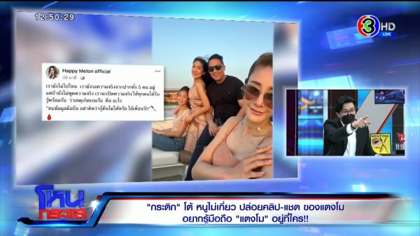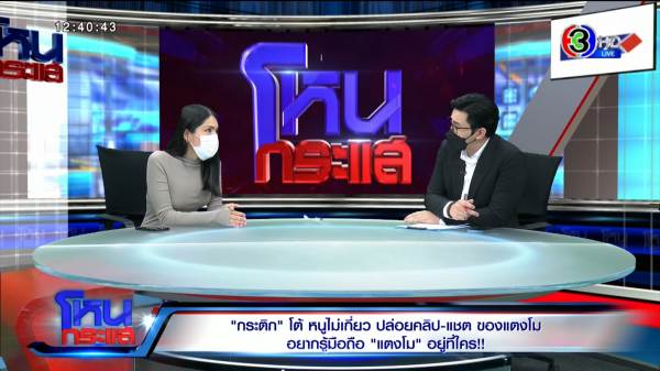 รายการโหนกระแสวันที่ 23 พ.ค. 65 ดำเนินรายการโดย “หนุ่ม กรรชัย กำเนิดพลอย” ผลิตในนามบริษัท ดีคืนดีวัน จำกัด ออกอากาศทุกวันจันทร์-ศุกร์ เวลา 12.35 น. ทางช่อง 3 กดเลข 33 สัมภาษณ์ “กระติก อิจศรินทร์” ผู้จัดการและเพื่อนรัก “แตงโม นิดา พัชรวีระพงษ์” หลังจากที่เฟซบุ๊กแตงโม มีการเคลื่อนไหวโพสต์ปริศนา พุ่งเป้ามาที่กระติกทำนองว่าเป็นคนทำร้ายแตงโม ด้าน แม่แตงโม เผยว่าคนรู้รหัสคือกระติก เป็นเธอหรือเปล่า