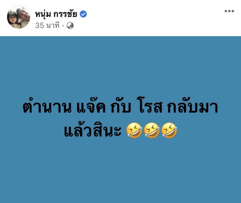 เกี่ยวกับเรื่อง หนุ่ม กรรชัย ซึ่งเป็นอีกหนึ่งคนที่ติดตามข่าวนี้มาตลอด ก็ได้โพสต์เฟซบุ๊กแสดงความคิดเห็นสั้นืๆ ว่า ...ตำนาน แจ๊ค กับ โรส กลับมาแล้วสินะ ….