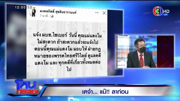 อยู่ในสายกับ พล.ต.ท.กรไชย คล้ายคลึง ผู้บัญชาการตำรวจสืบสวนสอบสวนอาชญากรรมทางเทคโนโลยี (ผบช.สอท) วันนี้จริง ๆ คุณแม่ต้องเดินทางไป ไปในฐานะอะไร?