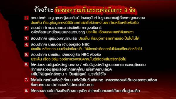 เดชา : ถอน ผมบอกงี้ มีนักการเมืองคนนึงไปโพสต์แบบนี้ หมายความว่ายังไง เขาบอกนายมงคลกิตติ์กับพวกไปแนะนำคล้าย ๆ ว่าจะไปดำเนินคดีเป็นคดีฆาตกรรม อาจารย์เดชาไม่ได้เห็นด้วย เห็นตามพนักงานสอบสวน อัยการ จะฟ้องคดีประมาทให้ถึงแก่ความตาย จะฟ้องมั้ยฆาตกรรม ผมบอกว่าผมไม่เอา ผมไม่เห็นด้วย เอาอย่างนี้ดีมั้ย ผมขออนุญาตถอนจตัว แต่เรายังเป็นเพื่อนกันเหมือนเดิม ไปกินข้าวไปกินไวน์กันได้เหมือนเดิมทุกอย่าง