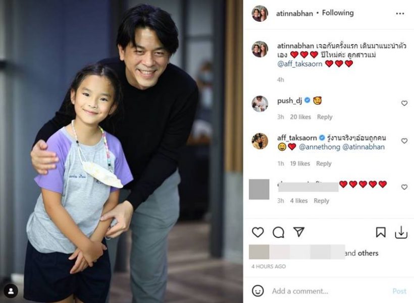 ล่าสุดในอินสตราแกรมของ เอ ทินพันธ์ เเฟนของ เเอน ทองประสม ได้โพสต์ภาพคู่ น้องปีใหม่ พร้อมทั้งเล่าความน่ารักผ่านเเคปชั่นว่า “เจอกันครั้งแรก เดินมาแนะนำตัวเอง ปีใหม่ค่ะ ลูกสาวแม่ @aff_taksaorn” หลังจากนั้น เเอฟ ทักษอร ได้เข้ามาตอบกลับว่า “รู้งานจริง ๆ อ้อนถูกคน”