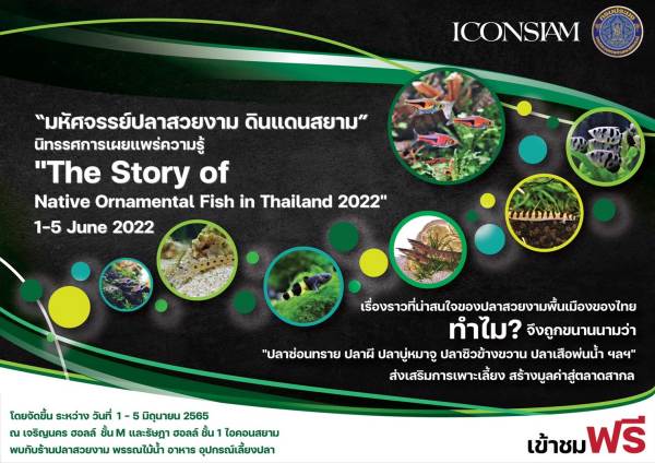 นายเฉลิมชัย สุวรรณรักษ์ อธิบดีกรมประมง เปิดเผยว่า กรมประมง จับมือ ไอคอนสยาม ร่วมจัดงาน “มหัศจรรย์ปลาสวยงามดินแดนสยาม” ภายใต้ธีม “The Story Of Native Ornamental Fish in Thailand 2022” เล่าเรื่องปลาสวยงามผ่านความภาคภูมิใจในแผ่นดินสยาม เพื่อสร้างการรับรู้ด้วยนิทรรศการแกลอรี่มีชีวิตของพันธุ์สัตว์น้ำสวยงามพื้นเมืองไทยที่มีความสำคัญทางเศรษฐกิจหลากหลายชนิด พร้อมส่งเสริมให้เกิดจิตสำนึกในการอนุรักษ์ ฟื้นฟู สู่การสร้างความสมดุลในการใช้ประโยชน์จากทรัพยากรที่มีอย่างจำกัดให้เกิดความยั่งยืน โดยภายในงานได้มีการจัดแสดงนิทรรศการภาพถ่ายและปลาสวยงามพื้นเมืองไทยมาร่วมจัดแสดงซึ่งรวบรวมพันธุ์สัตว์น้ำหาชมได้ยาก และใกล้สูญพันธุ์ สัตว์น้ำพฤติกรรมแปลก มาให้ได้ชมผ่านเรื่องราวที่แสนมหัศจรรย์อย่างใกล้ชิดถึง 15 สายพันธุ์ อาทิ