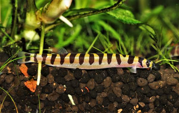 “ปลาบู่หมาจู” มีรูปร่างและลวดลายสีสันที่แปลกตา ลำตัวมีสีดำสลับเหลืองคล้ายผึ้งหรือแมลงภู่ เมื่อมองด้านหน้าจะมีลักษณะหน้าสั้นมู่ทู่เหมือนหน้าของหมาจู ถือเป็นปลาสวยงามขนาดเล็กที่ได้รับความนิยมสูงในตลาดต่างประเทศ
