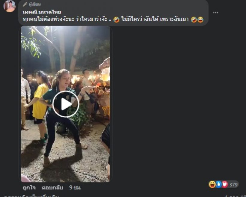 ต่อมาก็ได้คอมเมนต์ใต้โพสต์ต่อว่า “ทุกคนไม่ต้องห่วงจ๊ะนะ ว่าใครมาว่าจ๊ะ .. ไม่มีใครว่าฉันได้ เพราะฉันเมา”