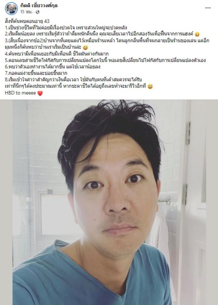 โดยพิธีกร/นักแสดง/นักเขียนบทโทรทัศน์ชื่อดัง เผยผ่านโพสต์ว่า “สิ่งที่ค้นพบตอนอายุ 43