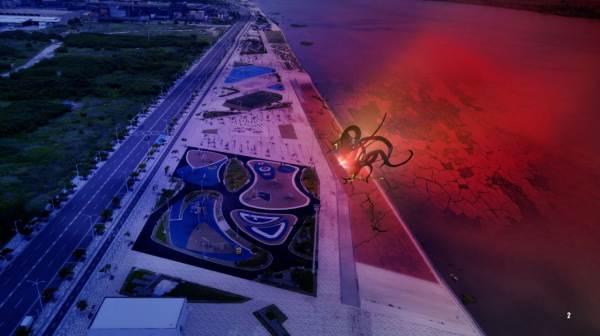ภาพเรนเดอร์รอยแยกแห่งมิติที่เมืองท่าบาร์รันกียา ประเทศโคลอมเบีย