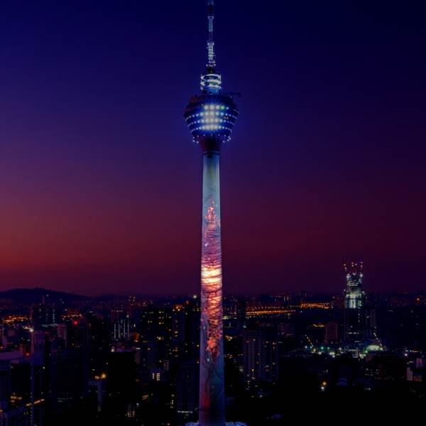 ภาพเรนเดอร์รอยแยกแห่งมิติที่หอคอยกัวลาลัมเปอร์ ประเทศมาเลเซีย