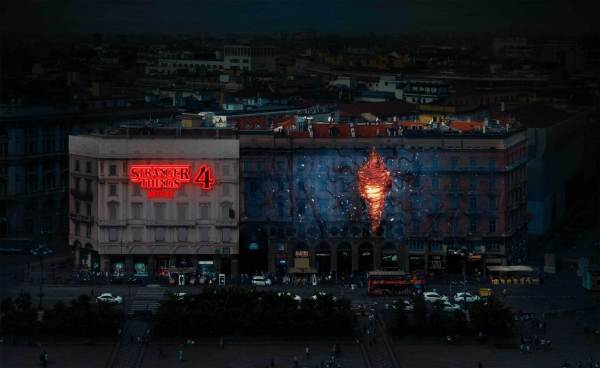 - ส่วนที่มิลาน ที่จัตุรัสดูโอโมชื่อดัง รอยแยกแห่งมิติที่ชวนตะลึง จะเปิดออกบริเวณตัวพระราชวังคาร์มินาติอันเก่าแก่ เผยโฉมให้แฟนๆ ได้เห็นโลกกลับด้านด้วยตาของพวกเขาเอง โดยในเช้าวันถัดไปที่บริเวณจัตุรัสดูโอโม จะอบอวลไปด้วยบรรยากาศที่เหมือนได้ย้อนกลับไปในยุค 80’s จากการขึ้นโชว์โลโก้ของซีรีส์ Stranger Things แบบย้อนวันวาน ตลอดจนการสัมผัสประสบการณ์ซึ่งเน้นธีมหลักหลากหลายแบบสำหรับให้แฟนๆ ได้เอนจอยกัน