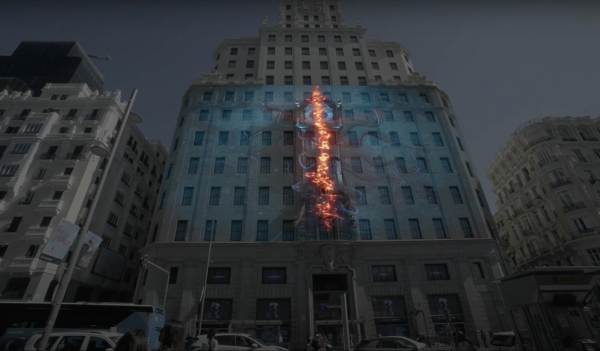 ภาพเรนเดอร์รอยแยกแห่งมิติที่ตึก Telefónica ในกรุงมาดริด ประเทศสเปน