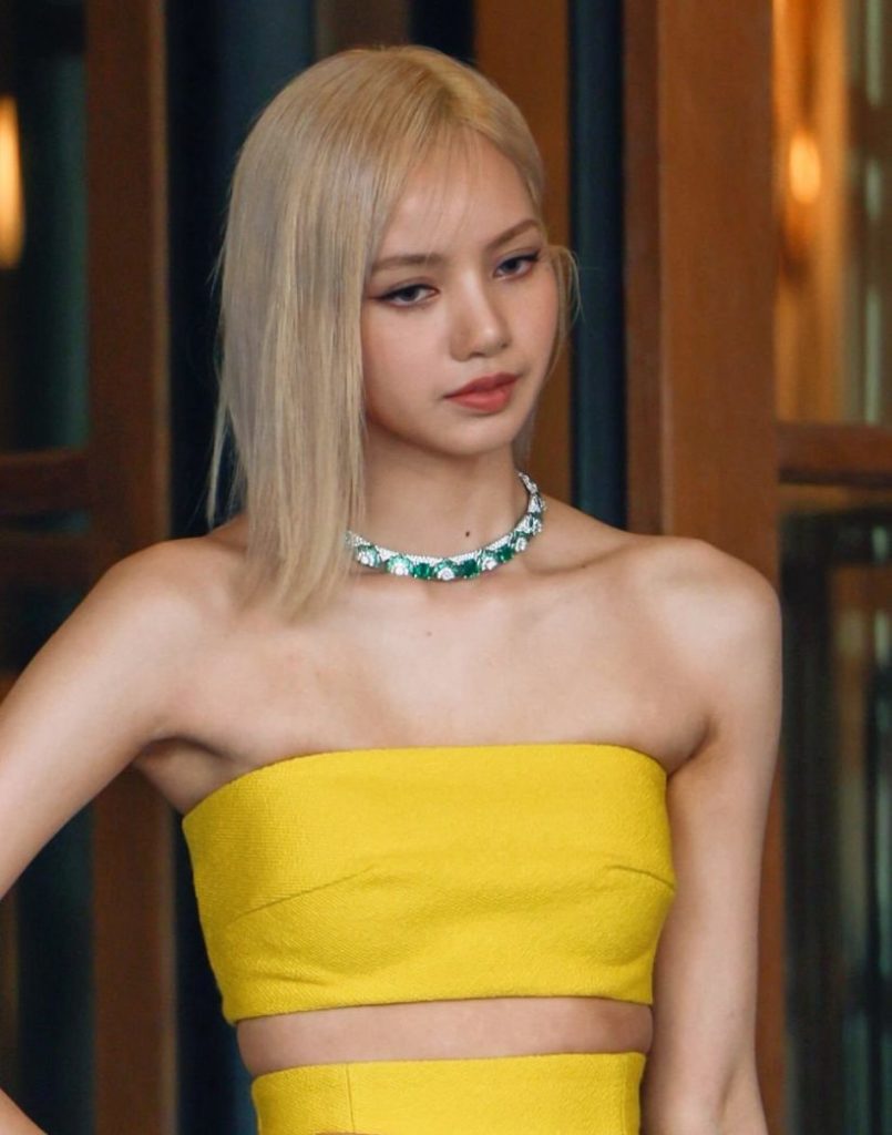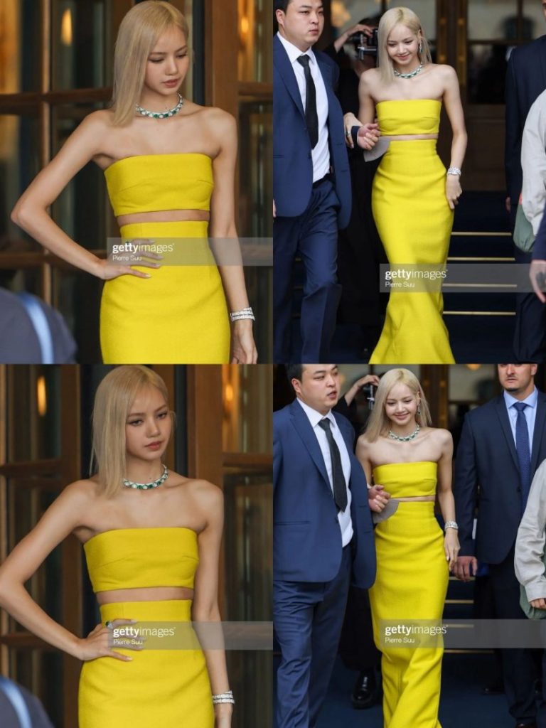 สําหรับงานนี้ ลิซ่าสวมชุดเดรสสีเหลืองอวดรูปร่างที่สมบูรณ์ และผมสีบรอนด์ เรียกว่าสวยเริดและสะกดได้ทุกสายตาเลยทีเดียว