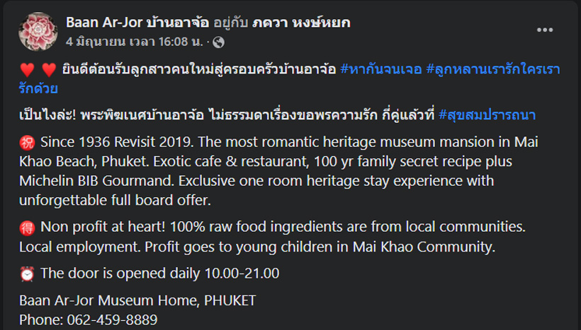 Cr_Facebook: Baan Ar-Jor บ้านอาจ้อ / ig: poydtreechada