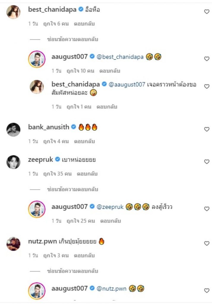ล่าสุด ออกัส อัพรูปตัวเองโชว์ซิกแพคสุดจัดผ่านทางอินสตาแกรม เรียกได้ว่าหุ่นแบบแน่นมาก ๆ งานนี้ทำเอาบรรดาเพื่อน ๆ และแฟนคลับกรี๊ดกร๊าดในความแซ่บของหนุ่มออกัสกันถ้วนหน้า
