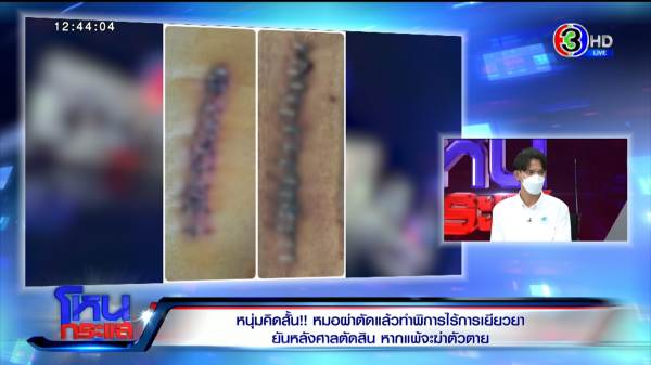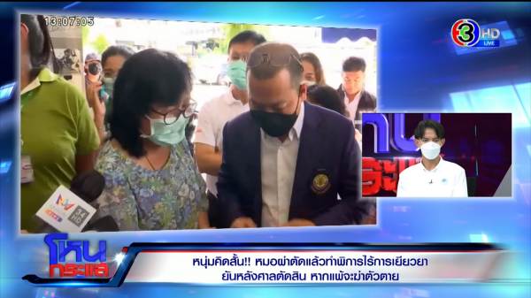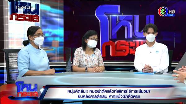 ไพศาล : เขาบอกว่า 14 จะฆ่าตัวตายที่ศาลจังหวัดนนท์เลย ผมบอกว่าใจเย็นก่อน เขาบอกเขามีทีมทนายแล้ว ผมพยายามอธิบายว่าการไกล่เกลี่ยเบื้องต้นเป็นแบบนี้ แล้วดำเนินคดีอาญาหรือยัง เขาบอกว่าทนายพาไปดำเนินการแล้ว แต่อาจเป็นวิธีการต่อสู้ของทีมทนายเขา ผมก้าวล่วงไม่ได้ ก็เลยโทรศัพท์หาทีมทนายเขา ทนายก็อนุญาต ผมก้เลยเข้าไปหาตร. พยายามกล่อมเขาและอธิบายกฎหมายเขาว่าหนึ่ง สามารถดำเนินคดีได้เลย คดีประมาททำให้ผู้อื่นได้รับอันตราย บาดเจ็บสาหัส อะไรก็ว่าไป ส่วนทางแพ่งก็ฟ้องละเมิดได้ ผมบอกเขางี้ แต่สิ่งที่อยากให้เข้ามาจัดการคือระบบสาธารณสุข เพราะการที่รพ.เอกชนทำแบบนี้ ตัวหมอทำไปแบบนี้ ถ้าผลมันพิสูจน์ได้ว่าเป็นผลจากการผ่าตัดจริง มันเอาผิดได้อยู่แล้ว มันมีพ.ร.บ.อีกเยอะแยะที่เข้ามาช่วยได้ อยากฝากหน่วยงานช่วยทำให้เร่งด่วน สิ่งที่ตลกที่สุดคือก่อนเข้ารายการ น้องบอกว่าสปส. มากดกริ่งหน้าบ้านแต่เช้าว่าเขาจะเข้ามาช่วยดูแล แต่ก่อนหน้านั้นน้องเขาร้องไปเป็นเดือนๆ สำคัญที่สุดคือแพทยสภา น้องเขาไปร้อง มีการบอกว่าคนรับเรื่องลาคลอด อีกเดือนให้ติดต่อมา ถ้าเกิดขึ้นไปแล้ว มีคนทำอะไรขึ้นไปคาศาล เขาได้รับความยุติธรรมตรงไหน มันง่ายๆ เลย เดี๋ยวเอาหมอคนกลางมาพิสูจน์ ว่าเหตุที่เขาเกิดขึ้น เกิดจากผลการกระทำของแพทย์มั้ย เกิดจากการผ่าตัดมั้ย หรือเกิดจากเหตุอะไร แต่การที่หมอมาบอกว่าเป็นเหตุสุดวิสัย สุดท้ายผมไปถามหมอที่รพ. เขาบอกว่ามีการสอบกันภายในแล้วไม่ใช่เหตุสุดวิสัย เขาพูดนะ