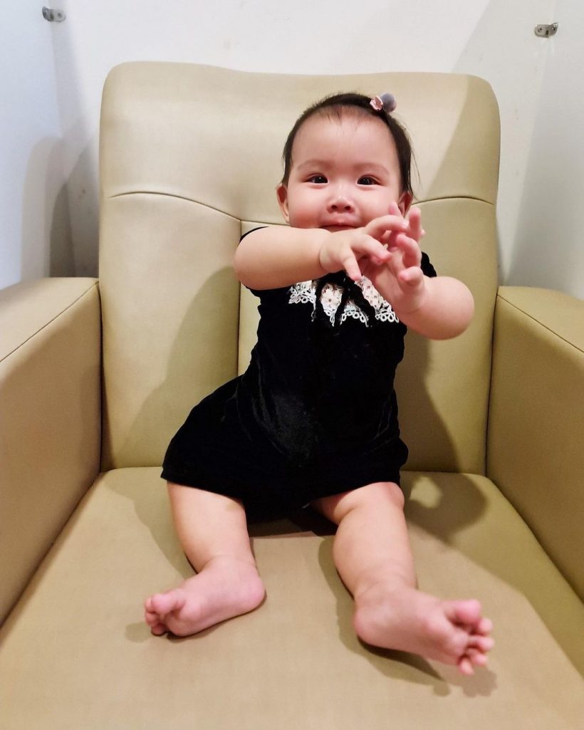 ล่าสุดในอินสตราแกรมของ จุ้มจิ้ม @jumjim_voranun เธอได้โพสต์ภาพของลูกสาวน้อง ลูนาร์ สาวน้อยวัย 7 เดือนที่กำลังนั่งอยู่บนโซฟา พร้อมทั้งส่งยิ้มหวาน ๆ สู้กล้องคุณเเม่
