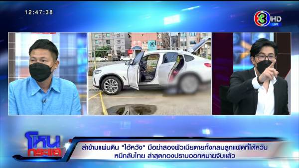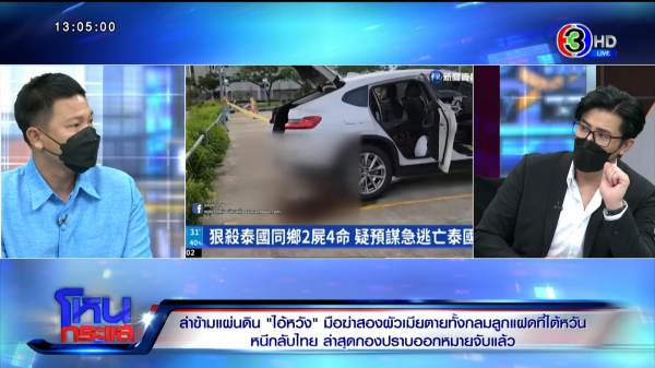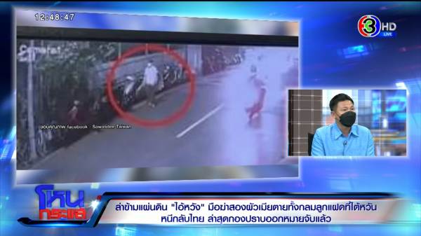 กรณีข่าวสยอง 2 ผัวเมียชาวไทยถูกหุ้นส่วน ถูก “นายหวัง” หรือ “สันติ” เพื่อนสนิทชาติเดียวกันฆ่าโหด ใช้เหล็กทุบ หมกศพยัดท้ายรถบีเอ็มดับเบิลยู จอดทิ้งหน้าสถานีรถไฟความเร็วสูงเถาหยวนที่ไต้หวัน ส่วนคนร้ายหลังก่อเหตุได้บินกลับประเทศไทย ขณะที่ผู้ตายท้องลูกแฝดได้ 5 เดือน ล่าสุดกองปราบได้ออกหมายจับเรียบร้อย