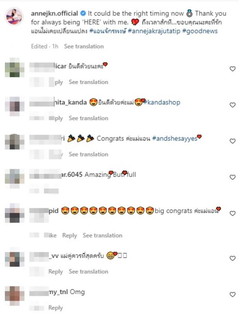 “It could be the right timing nowThank you for always being ‘HERE’ with me. ถึงเวลาสักที…ขอบคุณนะคะที่รักแอนไม่เคยเปลี่ยนแปลง #แอนจักรพงษ์ #annejakrajutatip #goodnews“