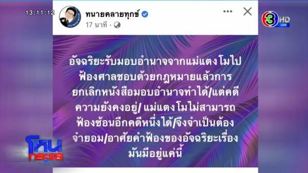 หนึ่งถอนหนังสือที่มอบหมายพี่อัจที่เป็นผู้รับมอบอำนาจ อันนี้ถอนได้ แต่ถอนคดีที่พี่อัจไปร้องศาล ยืนยันว่าไม่ได้ ทนายเดชาก็บอกว่าไม่ได้?