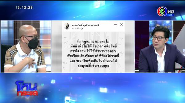 รายการโหนกระแสวันที่ 15 มิ.ย. 65 ดำเนินรายการโดย “หนุ่ม กรรชัย กำเนิดพลอย” ผลิตในนามบริษัท ดีคืนดีวัน จำกัด ออกอากาศทุกวันจันทร์-ศุกร์ เวลา 12.35 น. ทางช่อง 3 กดเลข 33 สัมภาษณ์ “อัจฉริยะ เรืองรัตนพงศ์” ประธานชมรมช่วยเหลือเหยื่ออาชญากรรม ปมแตกหัก “ส.ส.เต้ มงคลกิตติ์ สุขสินธารานนท์” กรณีไลฟ์สดระบุ “นางภนิดา ศิระยุทธโยธิน” แม่ของ “แตงโม นิดา” ลงชื่อในหนังสือยกเลิกสัญญาการมอบอำนาจให้อัจฉริยะ ดูแลเรื่องกฎหมายทางคดี อ้างแม่แตงโมไม่เห็นชอบเนื่องจากอัจฉริยะไปฟ้องศาลดำเนินคดีกับ 5 คนบนเรือในข้อหาตามป.อาญา มาตรา 288-289 ฐานกระทำโดยเจตนาให้ผู้อื่นถูกฆ่า ถึงแก่ความตาย