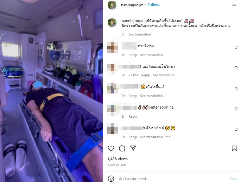 ล่าสุด แนนนี่ โพสต์คลิปขณะพาสามีส่งโรงพยาบาลโดยด่วน หนุ่มบอล นอนบนเตียงนิ่ง โดยโพสต์คลิปผ่านอินสตราแกรม @nanniejoopz พร้อมแคปชั่นบอกว่า “อุบัติเหตุเกิดขึ้นได้เสมอ!! นึกว่าจะเป็นอัมพาตซะแล้ว ขึ้นรถพยาบาลครั้งแรก ชีวิตจริงยิ่งกว่าละคร”