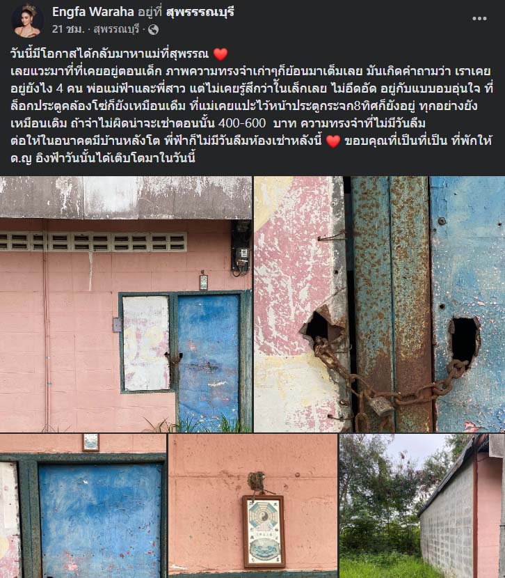 ล่าสุด ( 17 มิถุนายน) ในเฟซบุ๊กของ อิงฟ้า เธอได้โพสต์ภาพบ้านหลังเก่าพร้อมข้อความระบุว่า