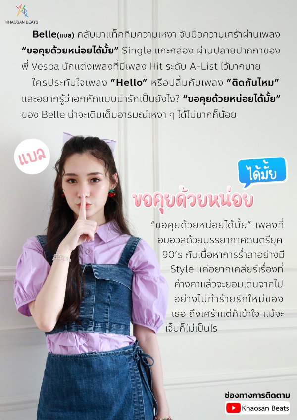 ติดตามให้กำลังใจสาวน้อยหน้าใส แบล ธัญวรินทร์ สังกัดค่ายข้าวสารบีท กับซิงเกิ้ลล่าสุดเพลง ขอคุยด้วยหน่อยได้มั้ย ได้ทางช่อง KHAOSAN BEATS