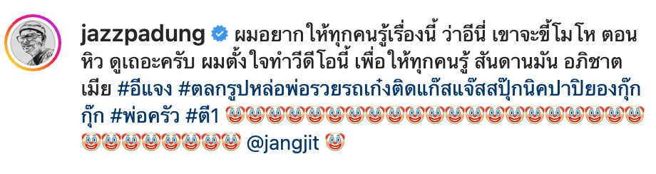เป็นอีกหนึ่งคนที่เรา มักจะนำเรื่องราวของเขามาเขียนให้เพื่อน ๆ ได้อ่านกัน สำหรับเรื่องราวของน่ารักของหนุ่มแจ๊ส และภรรยาคนสวย อย่างสาวแจง ที่มักจะมีเรื่องราวให้เราได้ยิ้มตามกันอยู่เรื่อย ๆ และล่าสุดกับวีดีโอที่หนุ่มแจ๊สของเรา โพสต์ผ่านทางไอจี โดยหนุ่มแจ๊สระบุแคปชั่นเอาไว้ว่า…