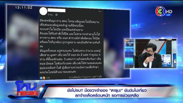 ดา : มันเป็นการแก้ปัญหาเฉพาะหน้าที่เราคิดได้ ณ ตอนนั้นจริงๆ ตอนนี้แอปฯ ก็ปิดอยู่ค่ะ ตัวคนผลิตแอปฯ เขาก็พร้อมแสดงความบริสุทธิ์ใจ เมื่อวานเขาก็ไปสบค. แล้ววันนี้ไปที่ตร.ไซเบอร์ แกจะทำตามขั้นตอน จะเปิดแอปฯ อีกครั้งเพื่อให้ลูกค้าที่ซื้อบางคนล็อกเอาท์ไปแล้วล็อกอินเข้ามาไม่ได้ เผื่อบางคนอยากเข้าไปเก็บหลักฐานเองเพื่อมาดำเนินคดี เขาฝากแจ้งมาค่ะ
