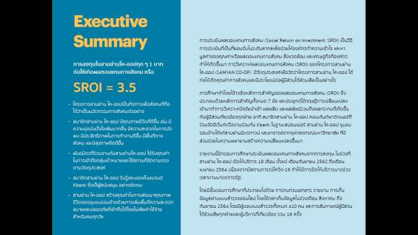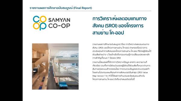 ในด้านการสร้างผลตอบแทนต่อสังคม สกุลทิพย์ กีรติพันธวงศ์ เลขาธิการ สมาคมผู้ประเมินมูลค่าทางสังคมไทย กล่าวว่า “ทั่วโลกกำลังให้ความสำคัญกับการวัดคุณค่าทางสังคม ด้วยการประเมินผลตอบแทนทางสังคมจากการลงทุน (Social Return on Investment: SROI) เพื่อส่งเสริมกระตุ้นให้เกิดการดำเนินงาน กิจกรรม เม็ดเงินการลงทุนที่ไม่เพียงสะท้อนผลตอบแทนทางเศรษฐกิจ แต่ยังประโยชน์และคุณค่าต่อสังคมและสิ่งแวดล้อม โดยสำหรับประเทศไทย นับเป็นช่วงเริ่มต้นในการสร้างความตระหนัก ความรู้ความเข้าใจต่อหน่วยงานทั้งภาครัฐ ภาคเอกชน ภาคสังคมในการนำเครื่องมือและกรอบแนวคิดมาสู่การพัฒนายกระดับ Impact Performance ขององค์กรต่อสังคม สมาคมฯเชื่อว่าการริเริ่มของสามย่านโค-ออป จึงนับเป็นก้าวสำคัญที่จะช่วยส่งเสริมให้เกิดความเข้าใจและการนำไปสู่การขยายผลสัมฤทธิ์วงกว้างในสังคมไทยต่อไป”