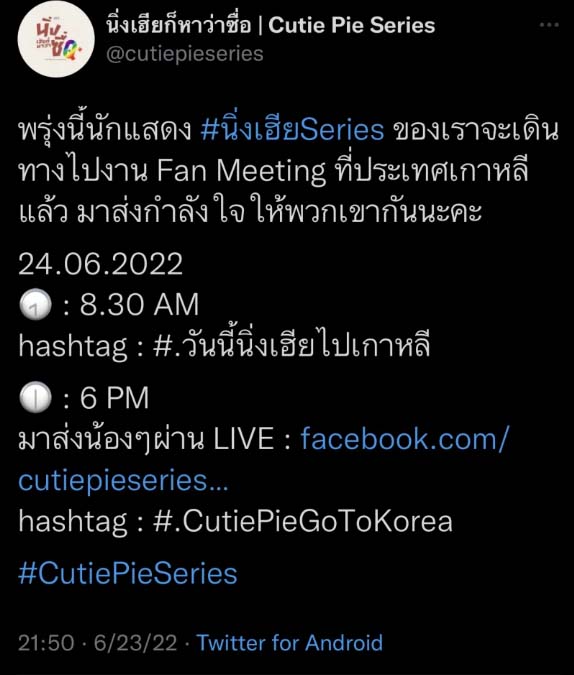 Cr_Twitter: #วันนี้นิ่งเฮียไปเกาหลี , #ไล่ศิลปินคนอื่นทำไม , ดูมันดิ DOMUNDI TV