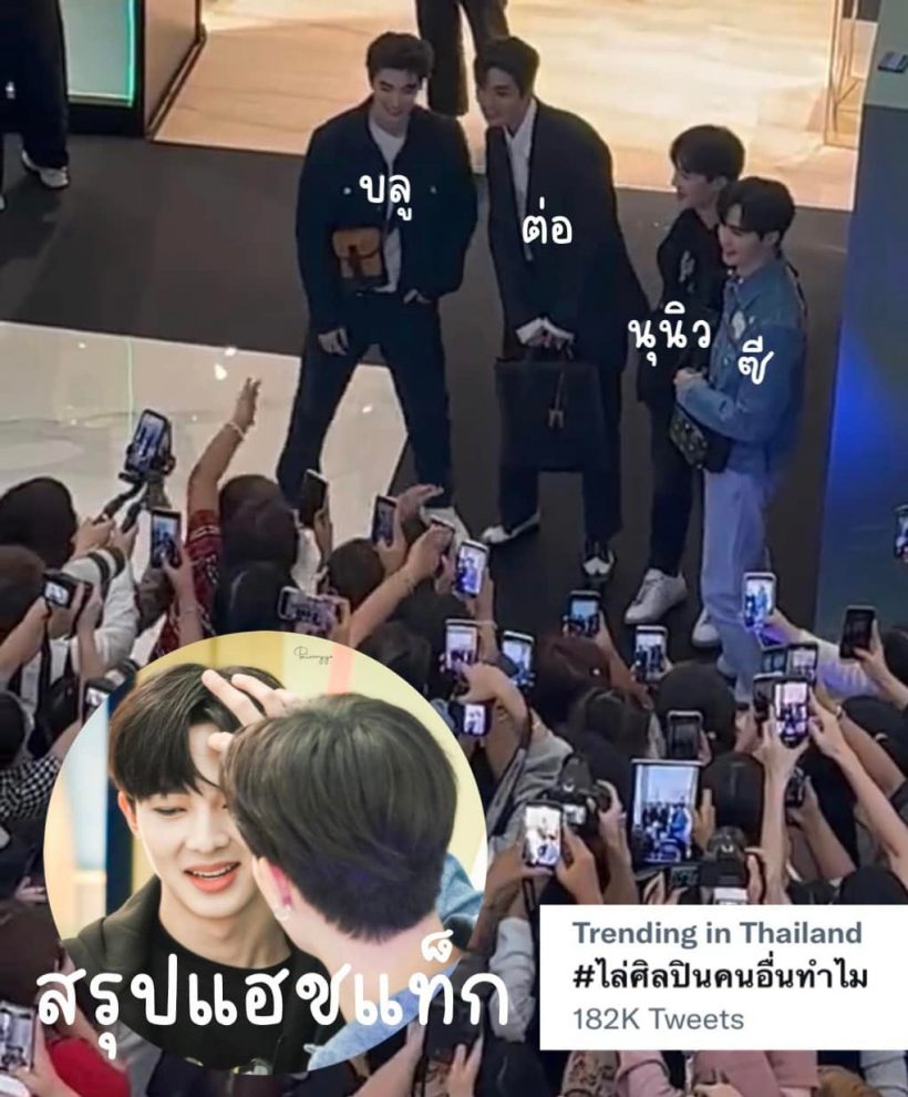 สืบเนื่องจากเหตุการณ์ของ “ต่อ ธนภพ และ บลู พงศ์ทิวัตถ์” ที่ถูกแฟนคลับของคู่จิ้น “ซี พฤกษ์ และ นุนิว ชวรินทร์” ที่โบกมือให้ขยับออกห่างจากคู่จิ้นเพื่อจะเก็บภาพโมเมนต์แบบเต็ม ๆ ทำให้ชาวโซเชียลเกิดเสียงวิพากย์วิจารณ์อย่างหนักว่า เสียมารยาทและไม่เหมาะสม จนเกิดทันที และมีการเรียกร้องให้แฟนคลับผู้กระทำสิ่งนั้นออกมาขอโทษต่อและบูลอย่างจริงใจและเป็นทางการ และติดเทรนด์ทวิตเตอร์อันดับ 1 เมืองไทยสำหรับ #ไล่ศิลปินคนอื่นทําไม
